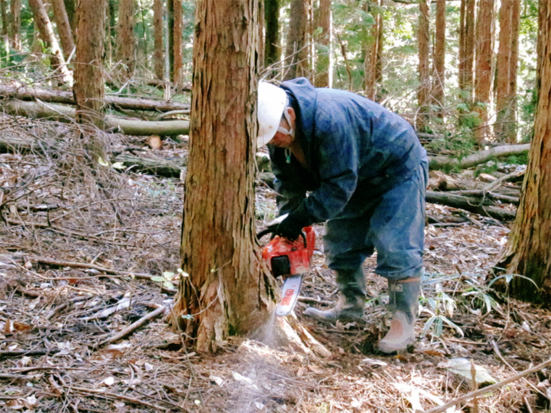 自然の象徴ともいえる森は古くから私たちとともに成長し変化してきました。私たちが森に助けられているのはもちろんですが、森も適度に手入れをしなければどんどん荒れてゆき大切な働きができなくなってしまいます。そこで大切なのが木の間引き(間伐)です。間伐されない森林は木がもやし状になり、森林が本来持つ水を蓄え、土を保つ力が不足し土砂崩れや洪水などの原因にもなります。間伐をすることは健全な森をそだてる大切な役割なのです。間伐もむやみに伐るのではありません。栃木県の森林組合職員が直接山に入り、直接見て適切な木を選び間伐しています。