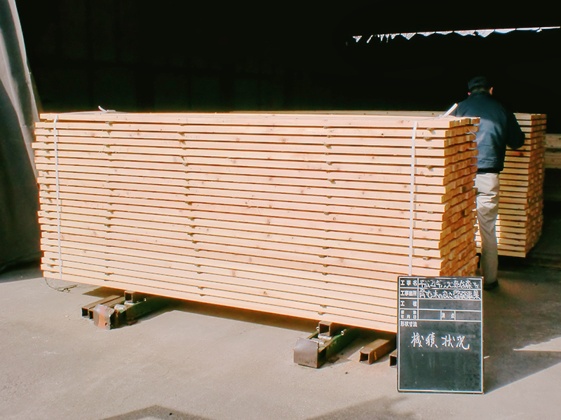 製材した板材をまず自然乾燥させたのち、工場内にある乾燥室で人工乾燥を行います。そうして仕上げた部材を狂いのない乾燥材にしていきます。