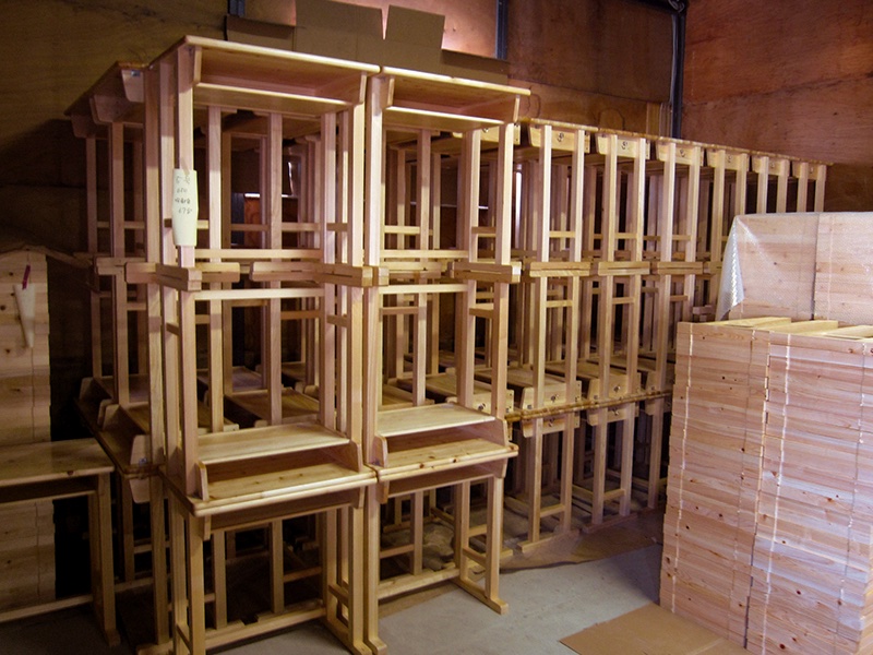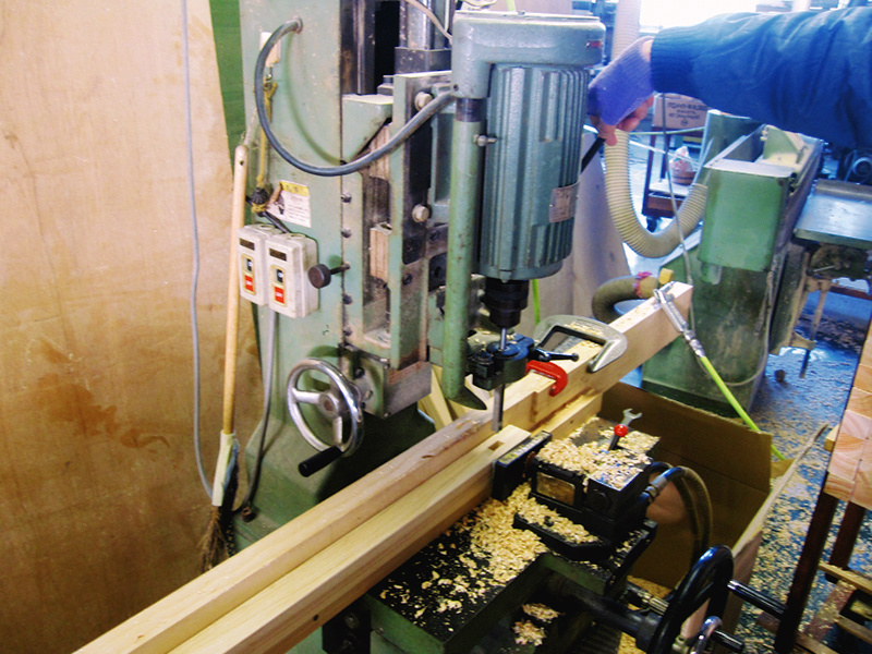 木取りした部材を各パーツの形になるように加工していきます。工場内にある機械を使い、手作業で仕上げていきます。